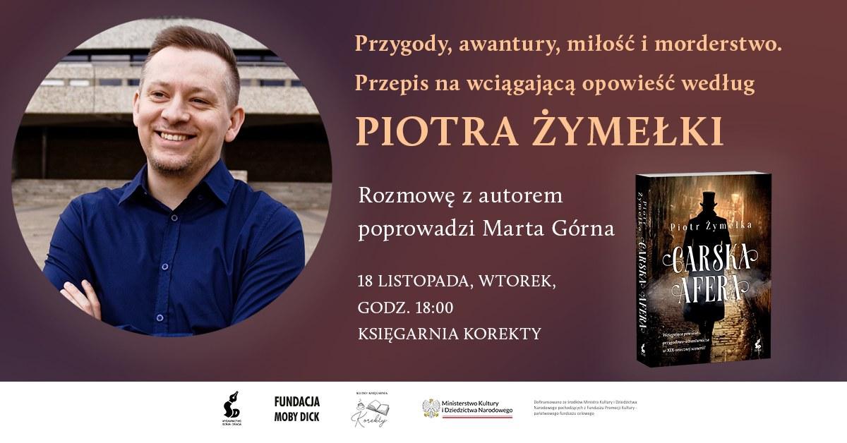 Zapraszamy na spotkanie z Piotrem Żymełką, autorem brawurowej powieści awanturniczo-przygodowej „Carska afera", które odbędzie się 18 listopada o 18:00 w Księgarni Korekty w Warszawie.