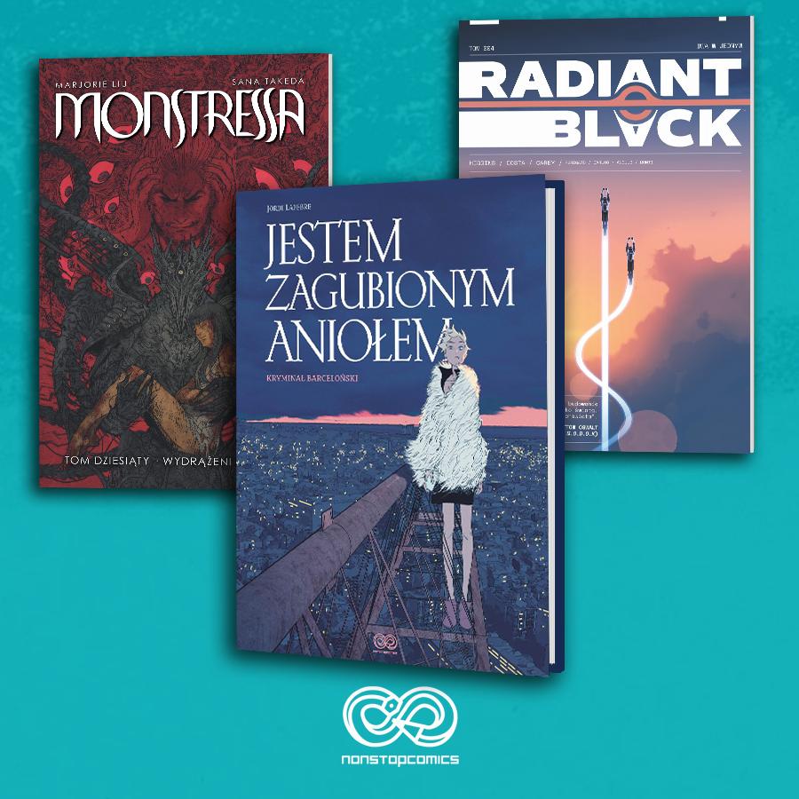 W kwietniu wydamy trzy albumy - kontynuacje znanych serii Monstressa i Radiant Black oraz nową, niezależną opowieść z udziałem psycholożki Evy. Wszelkie szczegóły dostępne są po kliknięciu na dany tytuł: