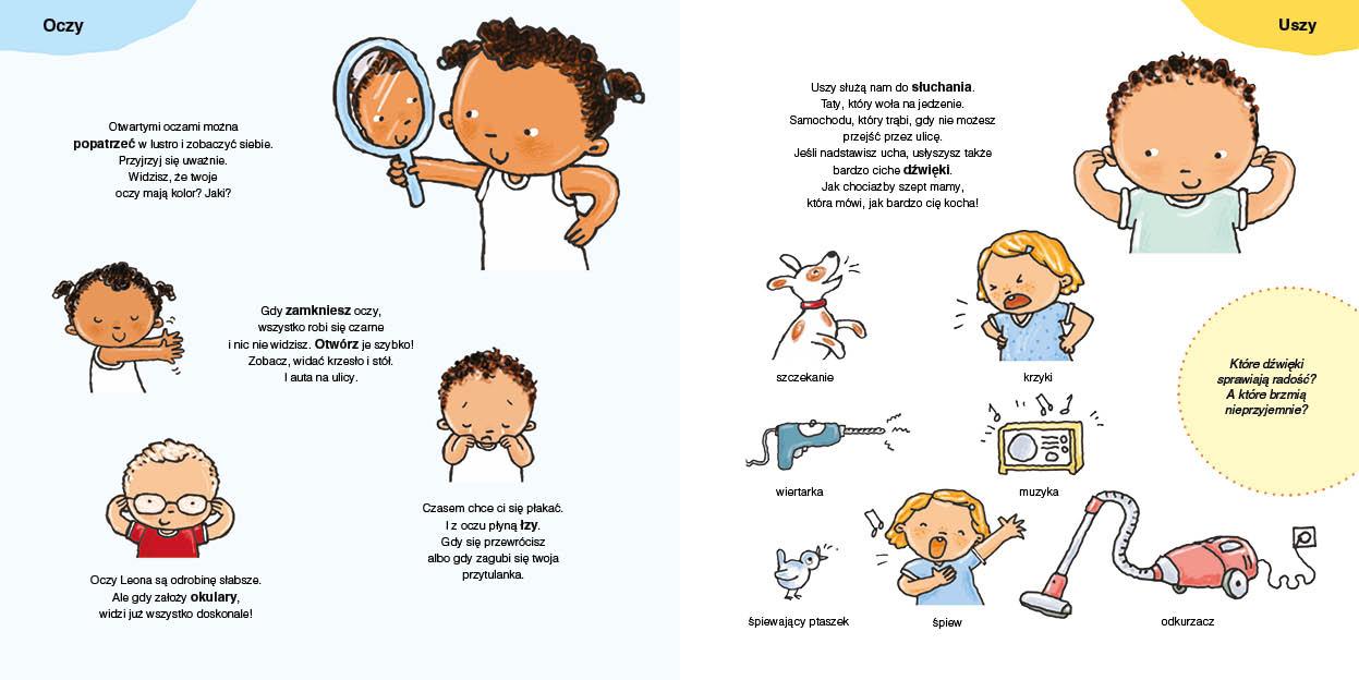 Ta książka zabierze dzieci w niezwykłą podróż od czubka głowy aż po czubki palców u stóp. Dowiedzą się, jak nazywają się części ciała, jak o nie dbać na co dzień oraz co dzieje się, gdy dopada nas choroba.